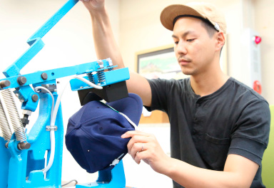 帽子に、名称やロゴマーク、イベント名などをプリント、又は転写シート、刺繍により加工いたします。