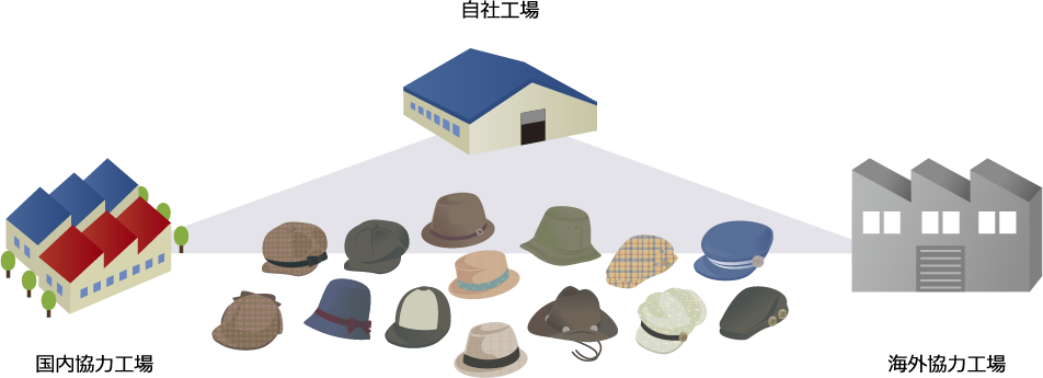 長期にわたる太いパイプがお客様の帽子を実現します。